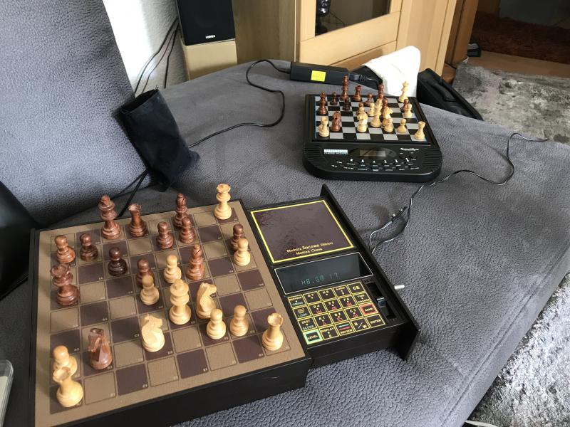 Die nächste Partie ist zwischen dem Chafitz Steinitz encore und dem Einstein Chess Wizard,