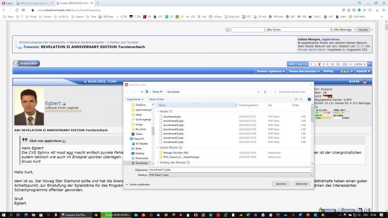 Es funktioniert bei mir mit keinem Browser (Firefox, Edge, Opera, Google). Dein obiger Link öffnet sich zwar, aber dann komme ich auf die letzte Seite aus dem Jahre 2019. Dann kann ich alle Seiten öffnen bis und mit 2.Seite. Hingegen die Nr. 1, also der aktuellste Beitrag versagt. Unter Firefox will er die *.phb-Datei herunterladen. Unter Opera sieht es gemäss beiliegendem Bild aus. Alles sehr merkwürdig, weil bei allen anderen Threads kein Problem vorhanden ist. Schreib doch mal eine neue Antwort in deinem Thread zu Testzwecken.