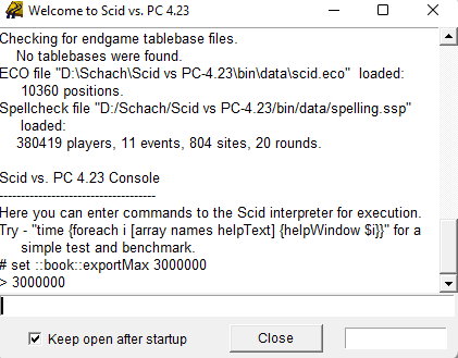 Wenn du die rot eingerahmte Zeile nicht siehst, starte Scid per