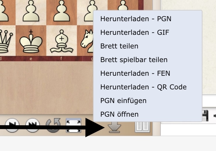 Ist alles vorhanden. Du findest im Nachspielbrett einen Pfeil, der nach unten zeigt. Diesen anklicken und dir stehen eine Vielzahl an Download Möglichkeiten zur Verfügung, u.a. auch die PGN-Variante.