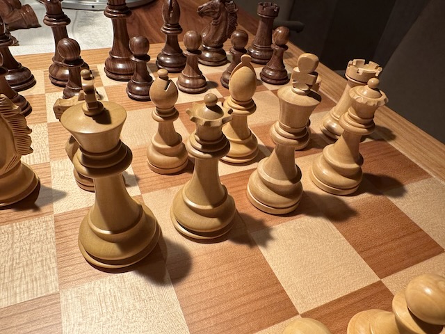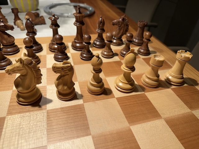Ich habe heute meine Premium-Figuren für das Chessnut Pro-Brett bekommen. Nicht, dass mir die alten nicht gefallen hätten, ich wollte aber lieber doch ein wenig schwerere Figuren haben. Auch wollte ich ein wenig mehr Kontrast/dunklere "schwarze" Figuren. Habe noch nicht damit gespielt, aber man merkt schon, dass alles ein wenig größer und schwerer ist. Die Springer sind für mein Gefühl ein wenig zu groß ausgefallen (Friesen?), aber eigentlich bin ich recht zufrieden.