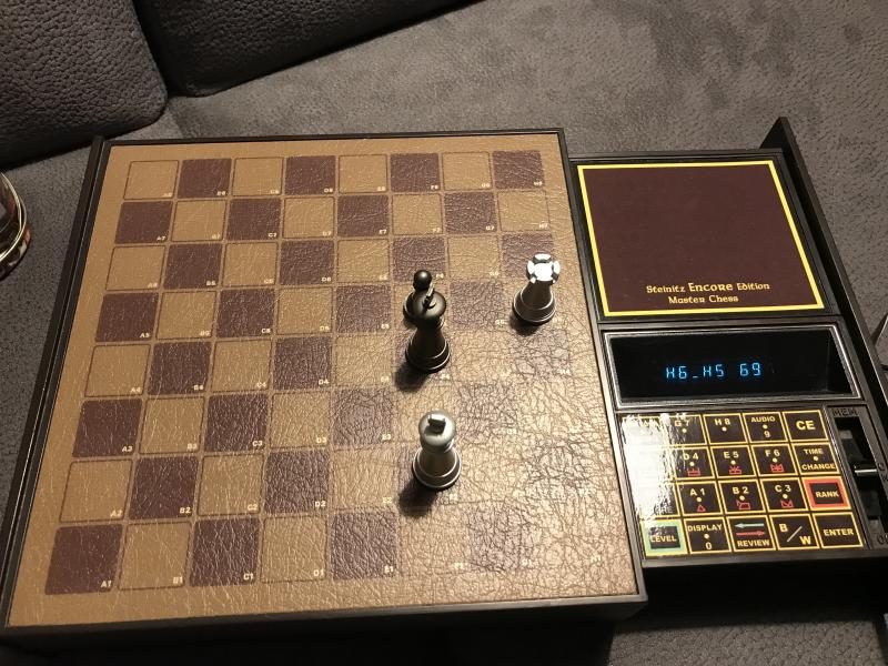 In der Partie Chafitz Steinitz encore Master Chess 4 mhz gegen Colossus Chess 4 auf C64 mit 4 mhz hatte der Colossus leider keine Chance: