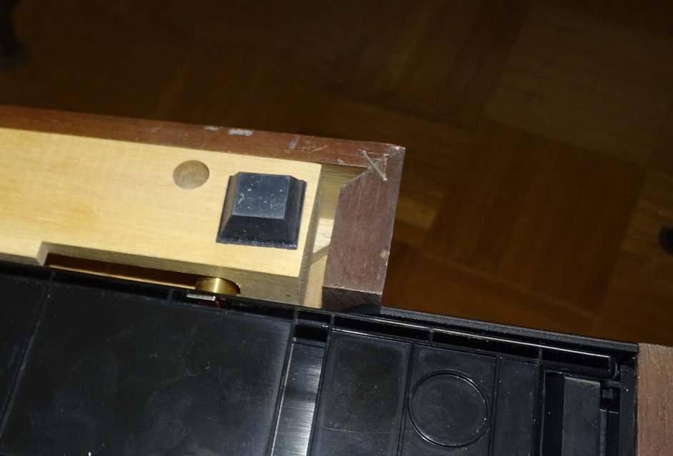 Meine beiden China-Bretter haben weder Laufschienen (wie die alten Dt. Bretter) noch Kugellager. Sondern einfachste Messing-Gleitlager (zwei konzentrische Zylinderhülsen laufen aufeinander). Und dies jeweils in einer Nut, direkt im Holz. Siehe Foto: