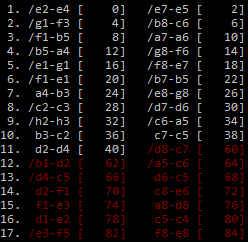 jetzt möchte ich auch mal etwas Licht in die Angaben zum Mephisto Monte Carlo von Franz Morsch bezüglich der eingebauten Bibliothek machen: Die Bibliothek besteht aus 6912 Halbzügen in 1015 Varianten. Die längste Variante ist 34 Halbzüge lang und lautet wie folgt: Wiki ist angepasst. Noch eine kleine Ergänzung: Es gibt insgesamt 4 Varianten mit jeweils 34 Halbzügen. Vielen Dank an Drahti für die Hilfe! Stay tuned ... Carsten