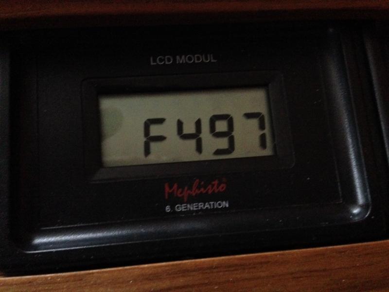 an der ersten Stelle (s. Bilder). Bis zu einem G, heißt wohl, dass er die 1. Displaystelle zur Anzeige nicht nimmt (seltsam) und wahrscheinlich bis zu 17kN/s rechnen kann, wenn man bedenkt, dass es ähnlich dem Hexadezimal-Zahlensystem eine Darstellung sein könnte. Einfach mit Buchstaben füllen, wenn keine einstellige Zahl mehr zur Verfügung steht. Hätte man auch die 5 Stellen im Display verwenden können. Atlanta macht dies natürlich genauso. Ist es jemandem bereits aufgefallen oder hat das schon jemand beobachten können?? Tom(mi) ![]() Rein theoretisch sollte er damit dann 16 Anzeigen, also bis zu 16000 Kn/sek. Der Mephisto II Brikett zeigt seine Bewertung Hexadezimal an. |
