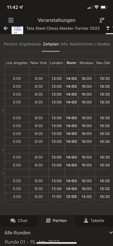 unter Chess.com kann man ja das Turnier verfolgen und ich hatte mir auf der chess.com App angeschaut, wann denn gespielt wird.