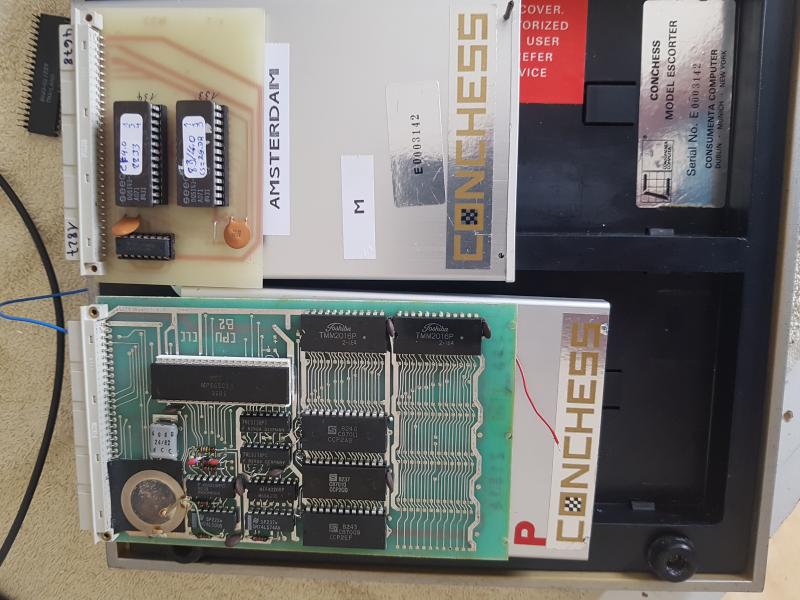 ok, die ROMs sind angekommen - vielen Dank! ![]() Wenn man aus den 2x16kB-ROMs ein 32kB-ROM macht, dann ist das fast identisch mit dem bereits vorhandenen Conchess Amsterdam 8MHz - es sind nur 5 Bytes Unterschied, also ist das ein ganz 'normales' Amsterdam-Modul (mit einer evt. leicht unterschiedlichen Programm-Version), das nicht zusammen mit dem originalen Princhess-Modul funktioniert. Es läuft auch problemlos in CB-Emu mit dem Amsterdam 8MHz-Treiber (concams8), aber bevor ich es konkret in CB-Emu einbaue, warte ich noch ab, wie 'hap' diese Version in MAME benennt, damit die Unterschiede zwischen MAME und CB-Emu nicht zu groß werden. ![]() Grüße, Franz |