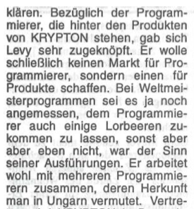 H.P. Ketterling schreibt zu den Krypton-Geräten in der Europa-Rochade, (März 1994) folgendes: