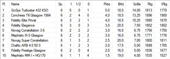 Damit es jetzt schon mal etwas zu "sehen" gibt, stelle ich die Partien vom Mephisto Glasgow hier ein...