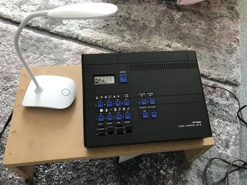 [Event "40/120 mkIV"] [Site "SCW"] [Date "2022.02.08"] [Round "4"] [White "Fidelity ChessCh. Sensory"] [Black "SciSys Chess Champion MKIV"] [ECO "B40"] [Result "0-1"] 1. e4 e6 2. d4 c5 3. Nf3 {"} Nc6 {"} 4. Be3 cxd4 5. Nxd4 Nxd4 6. Bxd4 Bb4+ 7. c3 Bf8 8. Bd3 Nf6 9. Bxf6 gxf6 10. O-O Bc5 11. Nd2 O-O 12. Qg4+ Kh8 13. Rad1 Qc7 14. Nb3 Qe5 15. Rfe1 a5 16. Nxc5 Qxc5 17. Qg3 Rg8 18. Qf3 Rg6 19. a3 h6 20. Re3 a4 21. Be2 Ra5 22. Red3 Rb5 23. Rd4 Rxb2 24. Rb4 Rxb4 25. cxb4 Qe5 26. Qd3 d5 27. exd5 exd5 28. Qb5 d4 29. Qxe5 fxe5 30. Rc1 Bf5 31. Bb5 Be4 32. Rc8+ Kg7 33. g3 Bc6 34. Bxc6 Rxc6 35. Rxc6 bxc6 36. Kf1 d3 37. Ke1 e4 38. Kd2 f5 39. h4 h5 40. Ke1 Kf6 41. Kd2 Ke5 42. Ke3 Kd5 43. f3 Ke5 44. Kd2 exf3 45. Kxd3 f4 46. gxf4+ Kxf4 47. Kd2 Kg3 48. Ke3 f2 49. Ke2 Kg2 0-1 MKIV spielt stärker als der damalige Ron Nelson.