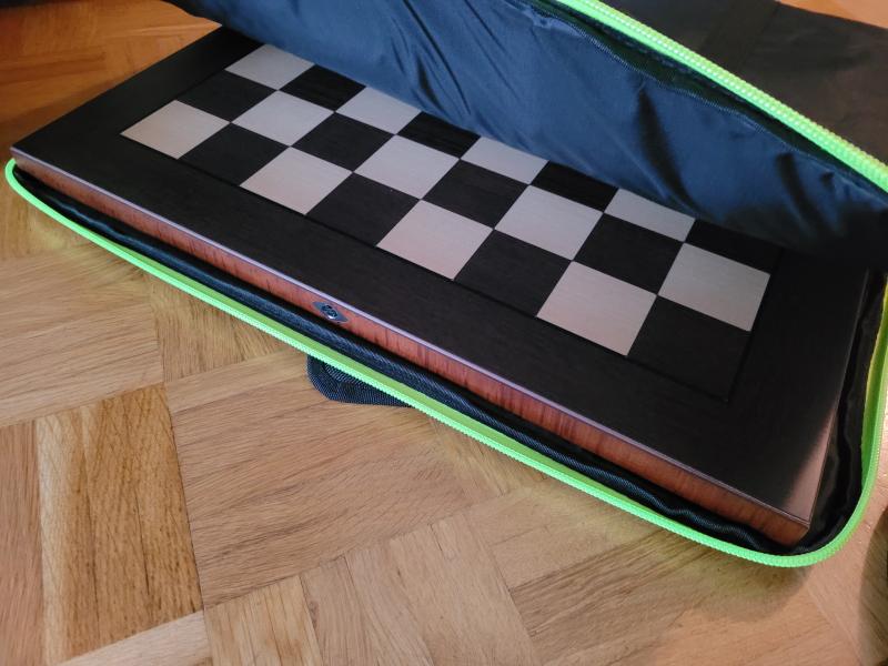 Wem der original Koffer zu groß oder zu teuer ist, der findet bei Musik-Thomann eine 60cmx60xm Tasche für das Phönix Turnier-Brett. Innenmaße sind 57cmx57cm und das Brett passt wirklich haargenau hinein! :-) (s. Fotos) https://www.thomann.de/de/gravity_bg_wbls_331.htm Die Tasche ist eigentlich für eine "Grundplatte", wahrscheinlich eine Art Stativständer, gedacht. Sie hat zwei stabile Handgriffe zum Tragen, die einiges aushalten dürften. Es fehlt lediglich ein Schultergurt (und die Ösen dazu) zum umhängen aber da kann man ja einen einer anderen Tasche anbringen. Figuren und Bedienkonsole kann man dann in einer separaten Tasche transportieren. Ich möchte nämlich doch den Phönix zum SimultanTurnier mitnehmen und da brauchte ich schnell eine gute und sichere Transportmöglichkeit. ... werde berichten ... Viele Grüße Björn Sigurd