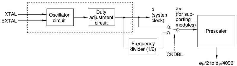 This Hitachi H8 family, the 3217 series (3202, 3212, 3214, 3216...), has a built-in clock pulse generator (CPG), and the internal clock signal is configurable by software. See attached diagram. There is a Turbo Advanced Trainer with 20 MHz XTAL and another one with 10 MHz XTAL, getting the same internal clock signal. But hap will give you a better explanation at emulation level. Best, Berger Geändert von berger (12.06.2024 um 22:55 Uhr) |