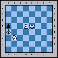 1. ... Ka4-b5 ?? (was Mephisto III auch sehr lange erwägt. Nach knapp 30 Minuten habe ich abgebrochen.). 1... Kb3: hätte die Partie gerettet.