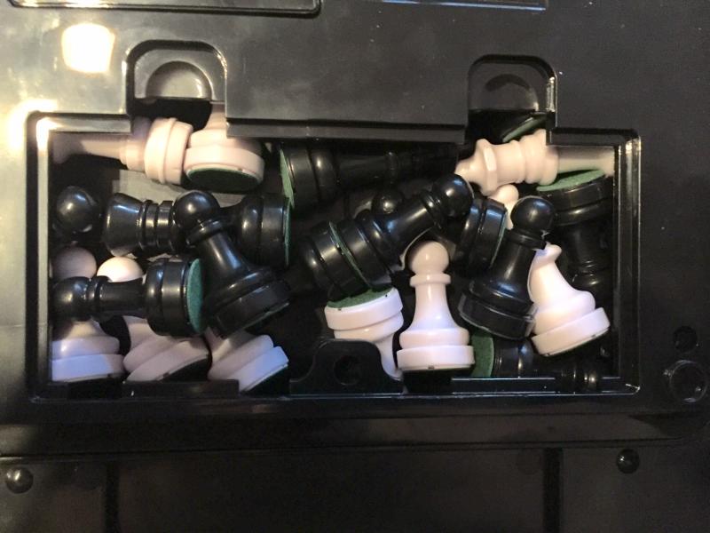 Jetzt ist es mir doch noch gelungen alle Figuren im Figurenfach des ChessGenius unterzubringen! Egal über welche "Tangram"-Fähigkeit man auch verfügt, 2-3 Figuren blieben immer übrig... :-( Wenn man aber den Steg, der das Figurenfach teilt, entfernt, passen alle Figuren gerade so rein. Fotos anbei! Den Steg kann man durch vorsichtiges hin- und herbiegen rausbrechen, da er an der sichtbaren Seite frei steht. Im Fach hat er aber eine seitliche Verbindung, die sich aber mit einer gebogenen Spitzzange, durch vorsichtiges hin- und herverdrehen, entfernen läßt. Viele Grüße, Ralph |