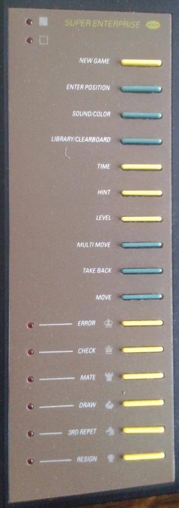 Gestern bekam ich ein farbige Super Enterprise zu hause. Bin sehr froh damit, ein plastic schachcomputer in andere als schwarz und silberne farben gibt es nicht sehr viele, und dieser ist attraktiv in meine augen. Die schwarze figuren sind dunkelbraun.