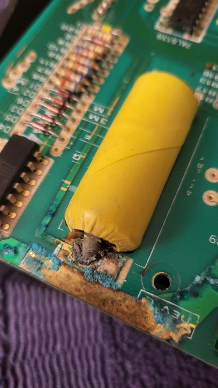Ich habe den akku mit einem saitenschneider herausgetrennt und die platine so vorsichtig wie möglich gereinigt. Zwei verdächtige stellen konnte ich leider nicht entfernen.