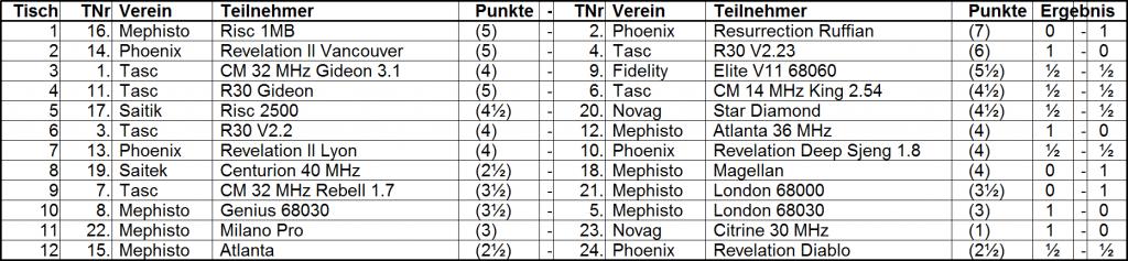 Selsam nur das der Resurrection Ruffian (1. Platz mit 8 Pkt.) um so viel besser abschneidet als der Revelation Deep Sjeng 1.8 (14. Platz mit 4,5 Pkt.)!
