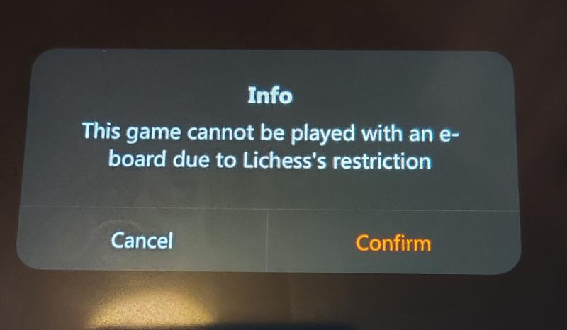 ich habe es mal getestet, alles mit der Chessnut-App. Android & iMac ohne Probleme und Warnungshinweis. Mit dem iPad erhalte ich den gleichen Hinweis wie Du. Selbstverständlich ist es auf Lichess erlaubt mit eBoards zu spielen. Es gibt ja direkt einen Bereich zur Konfiguration von DGT-Brettern und für das eOne wird ein sogenannter Token generiert. Beim Chessnut Air muss man das Board vorher 'Authentifizieren'. Ich spiele Partien mit Bedenkzeit (> 15 Minuten) nur mit dem Chessnut ohne Probleme. Da diese Meldung anscheinend nur bei der iOS Version erscheint KÖNNTE es ein App Problem sein und ignoriert werden (ohne Gewähr ...) Gewissheit bekommst Du natürlich nur durch 'Trial und Error'. Wenn der Account gesperrt wird, hast Du diese dann ja und erstellst halt einen neuen. Lichess kostet ja nichts ... Gruß, Bernd |