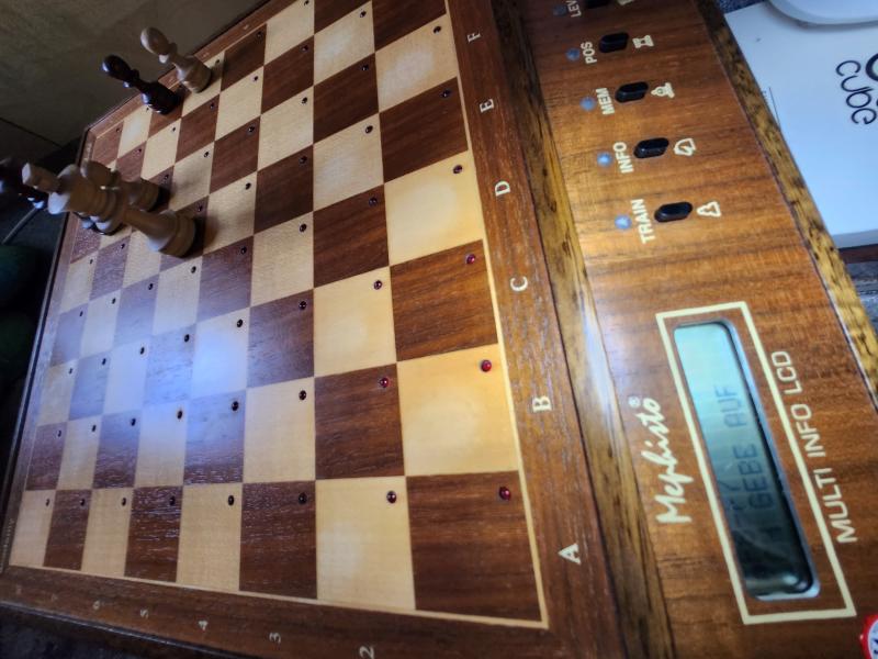 In der Begegnung Mephisto MMII HG240 (Rathsmann) gegen Mephisto Academy (Schröder) kam es zu einem Sieg des MMII.