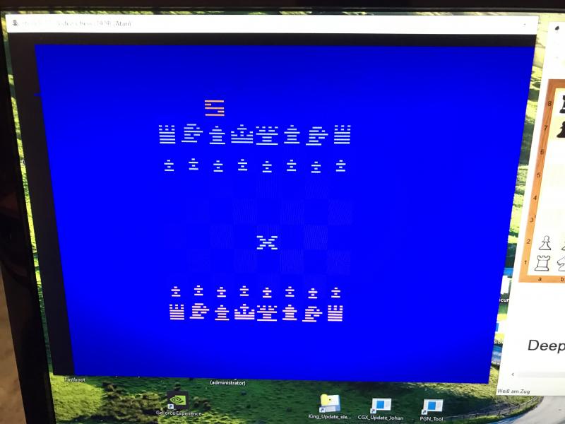 Die 1. Partie findet zwischen Ti 99/4A videochess und dem zx spectrum PSI chess statt. Sozusagen das Tabellen Ende. Beide noch ohne Punkt.