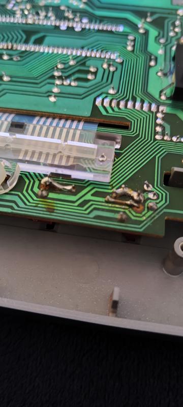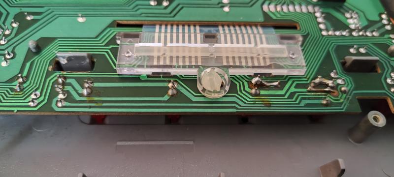 Fällt jetzt eine Leitung aus, funktionieren auf einen Schlag 8 Felder einer Reihe bzw. einer Linie nicht mehr. Deshalb bin ich so sicher, dass der Fehler dort zu suchen ist. Es kann im Prinzip auch noch ein Stück weiter in der Leiterbahnführung auf der Platine Richtung CPU ein Problem wie kalte Lötstelle o.ä. geben, aber die Wahrscheinlichkeit eines mechanischen Kontaktproblems am Foliensteck/klemm-Verbinder ist sehr viel größer.