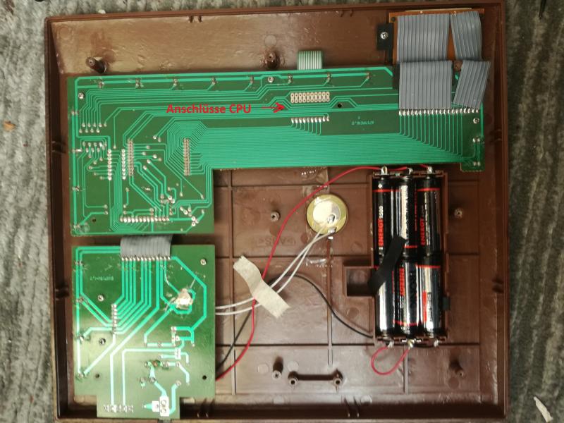 ![]() Carnelian ist übrigens ein Edelstein, auf Deutsch "Karneol". Das Gerät ist wirklich schön, auch wenn man weiß das es aus Plastik ist, Die beiliegenden Figuren sind aus Holz. Novag hat alle wichigen Funktionen mitgegeben wie Stellungsaufbau und viele Levels, allerdings hat man wenig Einblicke in die Denkweise oder Bewertung der CPU, das stellt das kleine Display nicht dar. Das Brett ist noch empflndlicher als ein Saitek-Brett, es lässt sich also gut spielen. Die dazugehörige Tasche habe ich leider nicht mitbekommen. Zur Spielstärke kann ich jetzt noch nicht viel sagen, zu wenig Spiele. Da der Opal aber so leicht aufzuschrauben war, habe ich mich hier auch rangewagt, es ist auch leicht, alles schöne Gewindeschrauben, keine Schnappverschlüsse oder lose Kleinteile. Wenn man den Boden abnimmt, sieht man die Platine von unten. Wenn man dann die große Platine löst, ist auf der anderen Seite der schwarze "Blop", wo sich drunter vermutlich die CPU versteckt. Aus der Bezeichnung daneben werde ich auch nicht schlau, falls sie etwas mit der CPU zu tun hat. War etwas enttäuscht, da aber bei Star Opal laut Wiki das selbe zu sehen ist, war eigentlich klar, dass das selbe kommt. Wieso wird die CPU unter einer schwarzen Masse versteckt? Das kenne ich nicht mal aus Handys. Fotos beiliegend, können in den Wiki wandern. Kardinalsfrage jetzt 4- oder 8-Bit CPU?!? Kann man das aus den Anschlüssen der CPU auf der Rückseite der Platine ableiten? Vermutlich nicht. Die Betriebsanweisung, in der die üblichen technischen Daten zu dieser Reihe aufgeführt sind: 16K-Programm, 8 MHz, 768 Byte RAM, schweigt sich auch hier explizit zur CPU aus. Was kann man daraus schließen? Grüße |