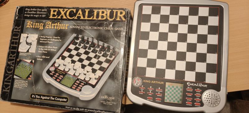 Heute habe ich einen King Arthur aus den USA bekommen. Erstaunt war ich zuerst über die Grösse des Gerätes. Ich kenne ja den Igor. Und den Einstein.den Ivan. Und die sind schon kleiner. Wobei. Das Spielfeld des Ivan ist gleich gross. Aber durch das zusätzliche Display des Arthur wird es wuchtiger. Schon erstaunlich was Ron Nelson da aus dem 4 Bit Gerät herausholt. Ich habe die version 2001 King Arthur 2.7 - Model Nr.: 915-2 Samsung S3C72F5DA9-C0C5 4-Bit core SAM47 S3C72F5 16K Byte ROM 544 Nibble Ram 1.5MHz Ausstattung, Display, infoanzeige und rechentiefe, bewertung und Zug während des rechenvorgangs. Sowas auf einem H8 zu realisieren ist eine Sache, oder auf 8-Bit. Aber auf einer 4 Bit CPU mit stark eingeschränktem RAM, da kann man nur vor Ehrfurcht staunen. Weiss jemand was die Versionen unterscheidet? Mehr Rom = mehr Eröffnung oder mehr Algorithmen oder mehr Sprache ?? Der RAM scheint bei den 24K Versionen ja auch verdoppelt worden zu sein. Gibt es Erfahrungen was die „Fast“ Stufe macht ? Mehr selektiv ? Rechnet er dann wie in der Anleitung steht auch tiefer ? Dafür mehr Fehler ?? Jedenfalls sehr spannend was hier alles geht. Was ich mir vorstellen könnte wäre ein turnier der 4 Bit Geräte, (Sphinx Seville, King Arthur, vielleicht noch ein Kittinger 4 bit [aber dann ein starker denn ich denke der Arthur wird ne harte Nuss]), sagen wir der Opal II. und dann ergänzt mit den hardwareschwachen Konsolen der Gründerzeit : Philipps videopac 4k + C7010, INTERTON VC 4000 Chess II und Saba Chess …. Was meint ihr ??