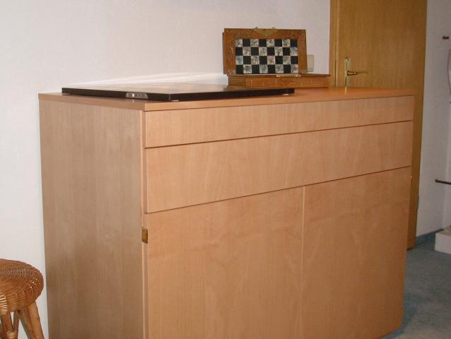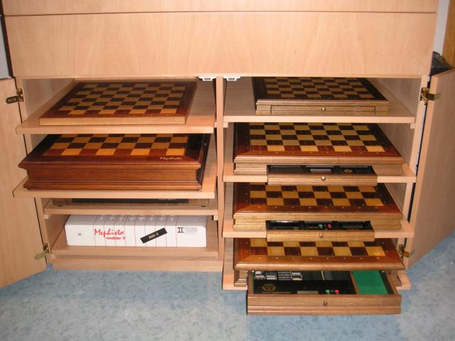der Tischler hat leider einen Einlegeboden vergessen, der wird noch für das Res. gebraucht, kann ich aber nachrüsten. Nun wollen wir mal den richtigen Standort finden, das Teil hat mit 66 cm doch eine ordentliche Tiefe. Dann noch einige Fächer eingeklebt für BDA und Netzteile, damit alles ordentlch verstaut ist. Das Schachzimmer ist gleich aufgeräumter ohne all die Schachteln und den anderen Krams. ![]() Herzliche Grüße Jörg - Uwe |