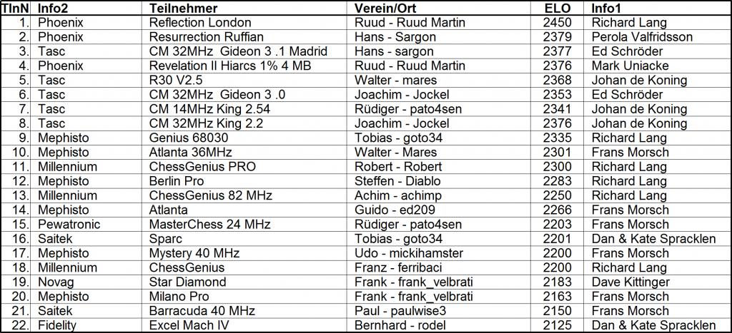 Und dann wäre ich auch dafür, nur noch "echte" alte Schachcomputer bis zum Jahrgang 2003 zuzulassen, um das Feld nicht den ChessMachinen und - Ruud, entschuldige bitte, den Phönix-Geräten zu überlassen.