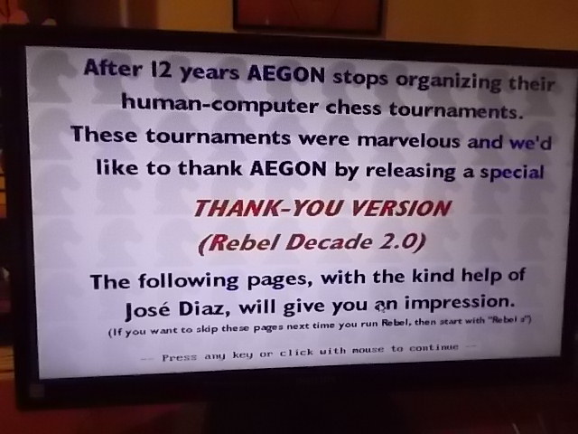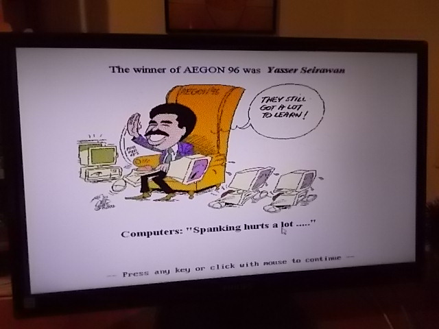 Zur Anschauung noch einmal ein paar Bilder, man muss ja immer jeweils eine Taste drücken, um letztendlich zum Schachprogramm zu kommen.