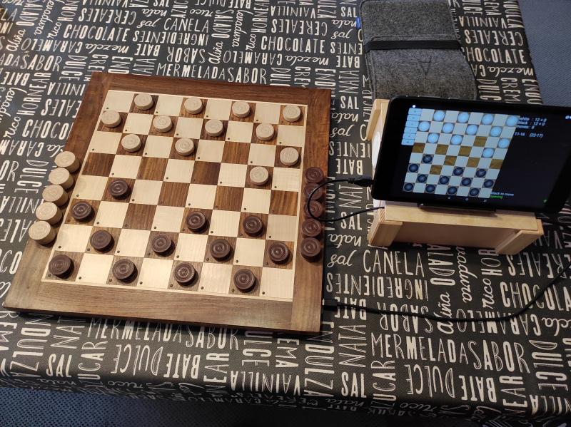 Das ist ja Prima, das Aart Bik das Programm "Checkers for Android" nun auch für das Certabo Brett aufbereitet hat. Nun habe ich mir Dame-Steine aus Holz und die entsprechenden RFID Chips Ø25 bei Amazon besorgt und zusammen geklebt. Die Filzplättchen hatte ich noch. Die Steine funktionieren wunderbar und es macht unheimlich Spass damit zu spielen. Bilder im Anhang. Viele Grüße Ingo |