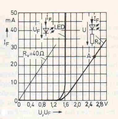 danke für die vielen Antworten. LC-LEDs habe ich nicht betrachtet (ich habe noch nie eine LC-LED wo eingebaut). Ich habe euch eine Diodenkennlinie von LEDs gescannt (siehe Anhang). Dort habe ich auch den Wert von 25mA und 1.6V wiedergefunden. Es sind zwei Kurven im Diagramm: die eine zeigt die Kennlinie der LED ohne, die andere mit Vorwiderstand. Bei der ohne Rv steigt der Strom beinahe "ungebremst" ab 1.6V, fast wie bei einem Kurzschluss. Mit dem Vorwiderstand wird die Kennlinie geschert. Aus der Wikipedia: "Für einfache Berechnungen kann die Diode mit einem in Serie geschalteten Bahnwiderstand RB als Schalter angesehen werden, welcher ab einer Spannung von 0,4 V schließt." Der Bahnwiderstand wird gerne vernachlässigt (nur bei höheren Strömen wegen der Verlustleistung interessant), darum ist das mit dem "R gegen 0" so eine Vereinfachung. LEDs "schließen" bei höheren Spannungen, z.B. 1.6V. Hochinteressantes Thema! Schöne Grüße, Sonny Geändert von Sonny (06.04.2008 um 10:43 Uhr) |