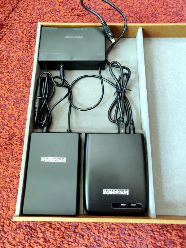 das ist das sogenannte "Steuermodul", das fest in der Schublade integriert ist und die Einzelteile intern verschaltet, mit zusätzlichem Ein-Aus-Schalter und Ladebuchse außen für den Anschluss des Netzteils, um den Chessvolt Akku nachzuladen. Gruß Gerhard |