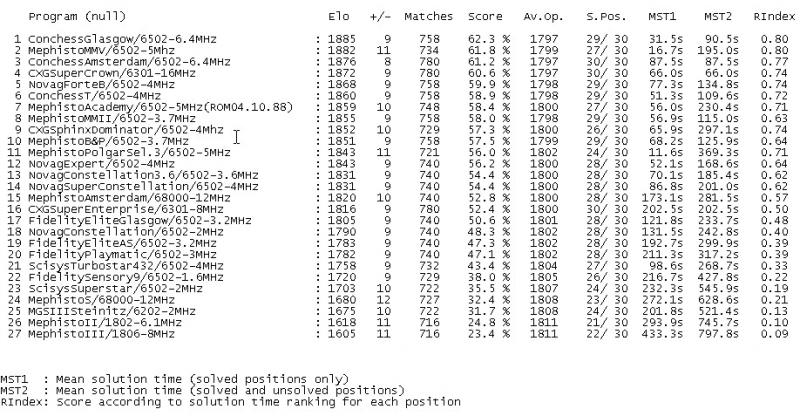 27 MephistoIII/1806-8MHz : 1458 14 719 18.5 % 1715 22/ 30