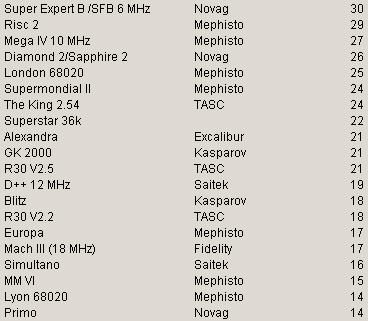 | 1. Aktivschach Elo Liste | Chessguru | Teststellungen und Elo Listen / Test positions and Elo lists | 6 | 23.05.2005 12:54 |