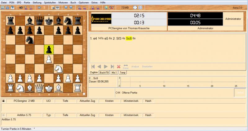 Leider ist das Programm sehr limitiert, da eine UCI GUI gegen eine andere GUI spielt (geht eigentlich nicht!!). Da waren einige Anpassungen erforderlich. Es ist leider nur möglich zu spielen, alle Extras wie Nachspielen, Zug zurücknehmen, etc.... gehen nicht.