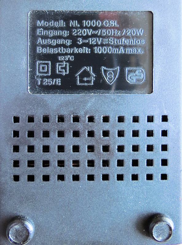 Aber, man sieht es am Typenschild: Input 20W. Das gilt zwar für Vollast (1000mA/12V), aber bei 400mA/9V bleibt immer noch genug übrig.