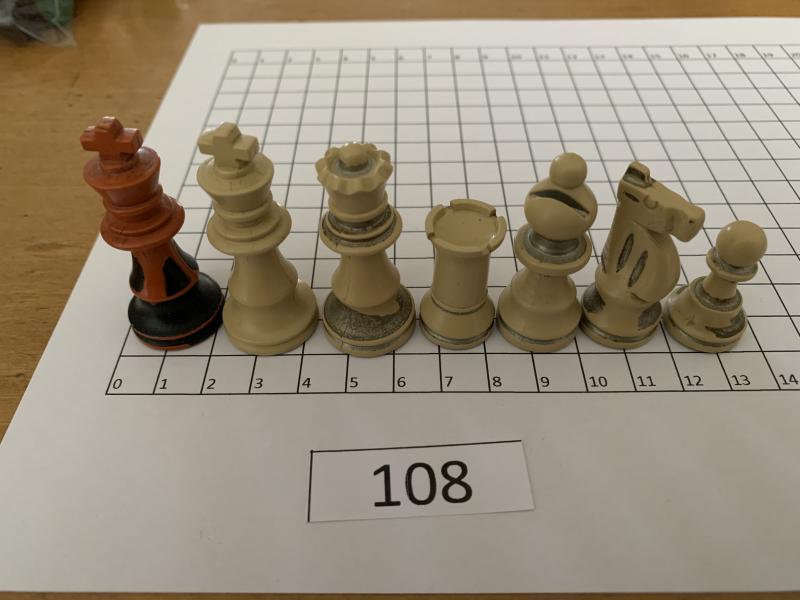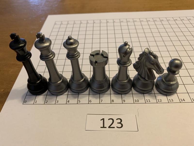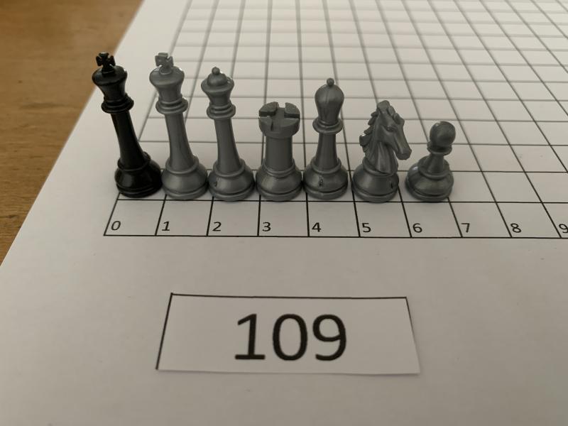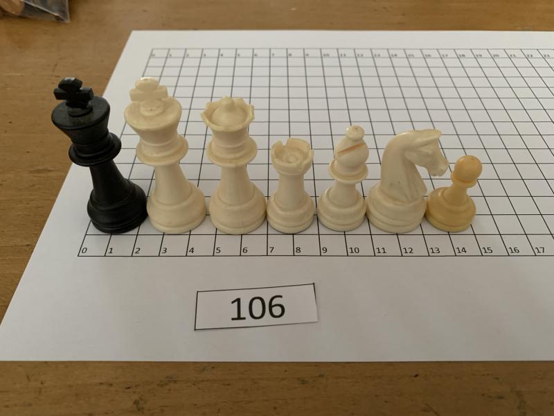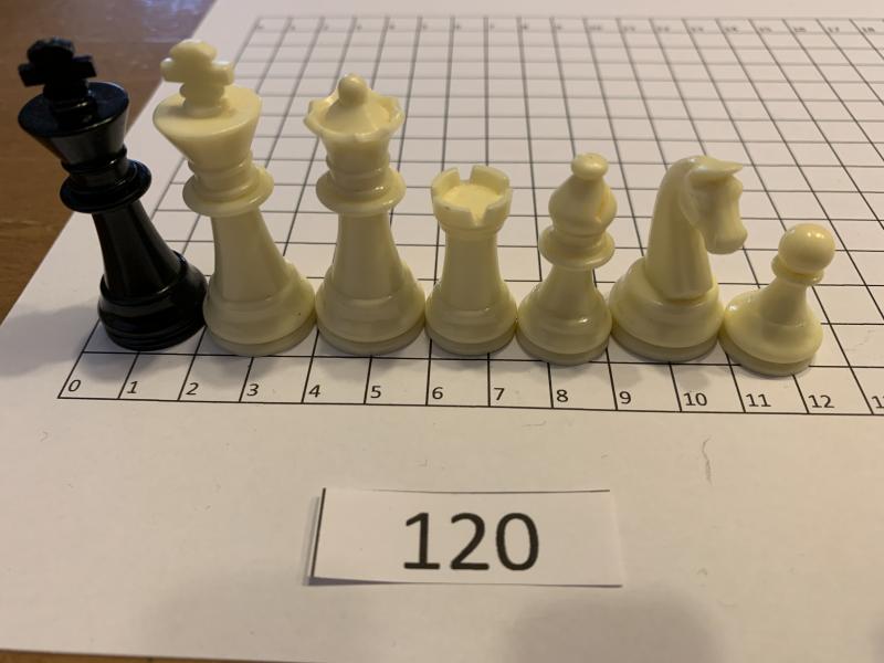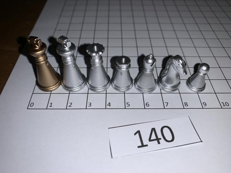 Hier noch einige: 100/101 - Saitek Turbo Advanced Trainer und/oder Mephisto Master Chess (der MC hat schwarze Figuren mit etwas metallischerem Glanz) 104/123 - CXG Super Enterprise (Schwarzes brett), - CXG Enterprise S - CXG Computachess III (CXG 008) (siehe auch https://www.schach-computer.info/wik...ack_pieces.jpg) 106 - Mephisto Modular brett 107 - CXG Super Enterprise (Braunes brett) - CXG Enterprise S (Braunes brett) - Multitech Enterprise (CC 009) 109 - gleiche Form wie 107, aber kleiner!?. 110 - Die Kreuze der Könige sind abgebrochen. Sie können entweder vom Tandy 1850 oder vom Saitek Team Mate stammen. Siehe auch 125. 114 - Novag figuren, das kann man am Springer erkennen. Z.b. Beluga, Emerald, Aquamarine RISC II, Zircon, Zircon II, vielleicht auch Super Forte. 116 - Selbe grösse und form wie RadioShack Champion 2250XL, diese sind aber metallisch, anders dann meiner 2250XL 118 - CXG Enterprise S ? 129 - Typische Novag figuren, aber welches brett? Spielfeld sollte etwas grösser sein als 20x20 cm.