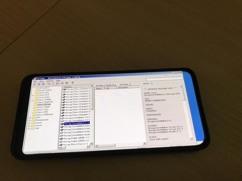 Screenshots of CB Emu Pro for Windows running the chess computer ROMS on my Android phone.