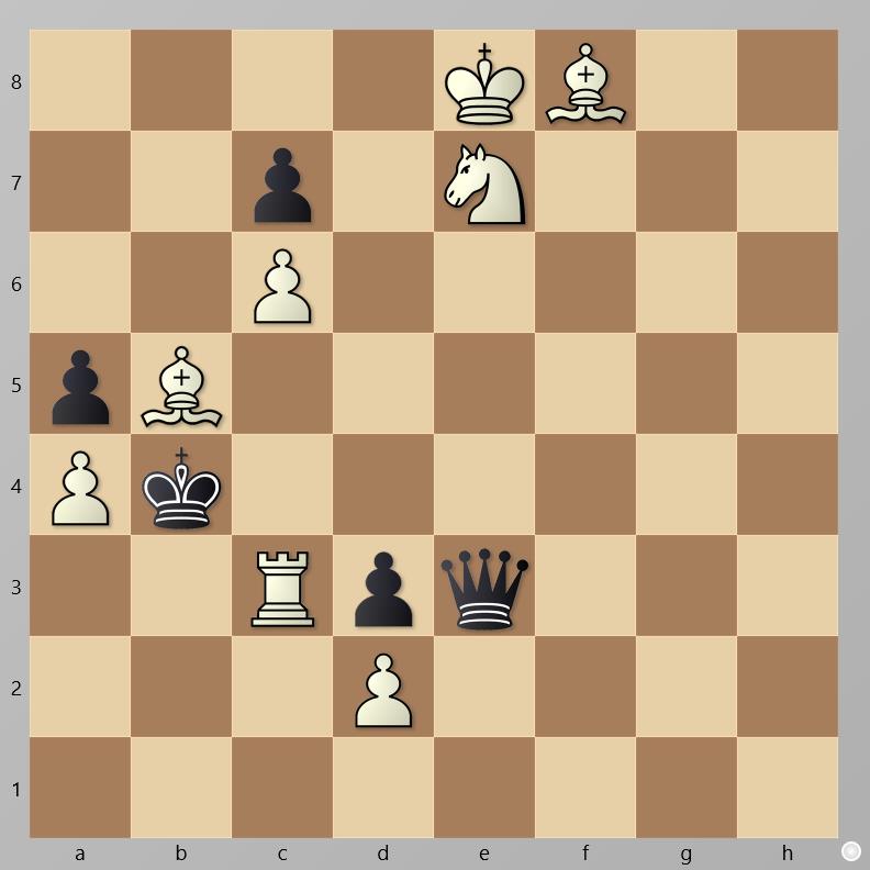Ich hatte mit 1. Lh3 überlegt, den Läufer zunächst nach d7 und dann irgendwie nach b5 zu überführen, um so mattzusetzen. Denn Black's King ist total eingekreist und praktisch bewegungsunfähig. Eine schöne Übung, sich die Beherrschung der Felder zu verinnerlichen. Um zum Ziel zu gelangen, musste natürlich der Springer c7 verjagt werden. Schöne Pläne, doch der kleine Gegner hatte fix immer Züge parat, um das Matt möglichst weit hinauszuschieben, sodass es nicht zum Matt in 3 reichte, aber im siebten Zug war dann endlich finito. Den ersten Zug für das Matt in 3 ließ ich mir dann zeigen, will jedoch hier nicht herumspoilern. Fazit: Hübsche Stellung. Die weißen Figuren stehen wirkungsvoller, der schwarze h-Turm etwa, ein Kampfschwergewicht, kann nur herumstehen und nicht in den Kampf eingreifen. Gruß! PS: Sorry, dass ich eher Zeit finde, einen Roman über die Stellung zu schreiben als sie mit einer App zu visualisieren. ;-)) |